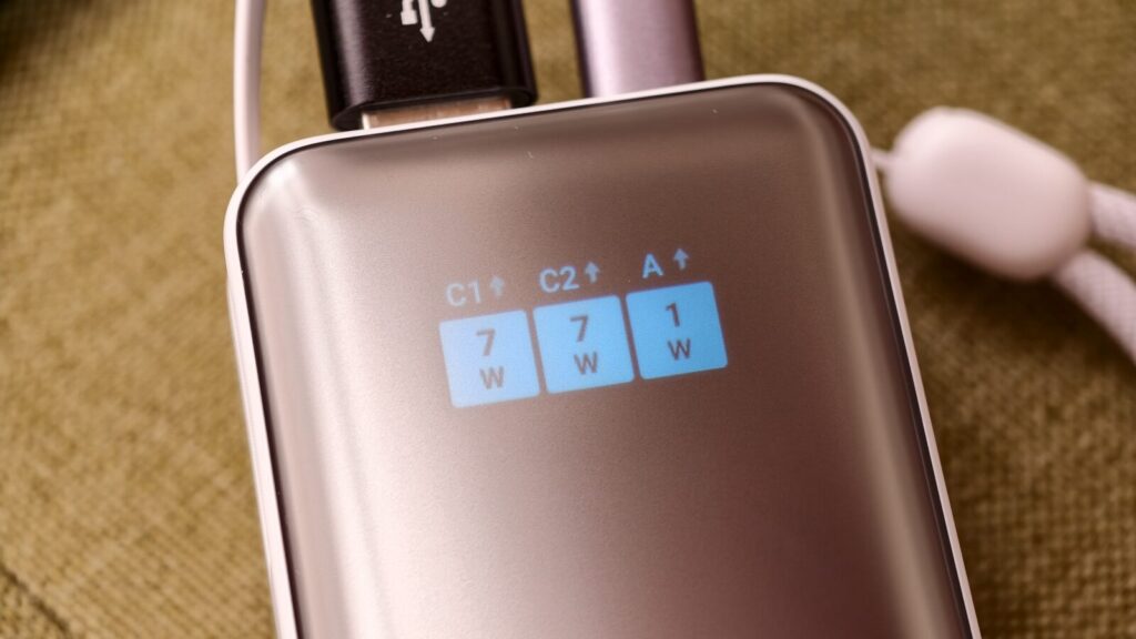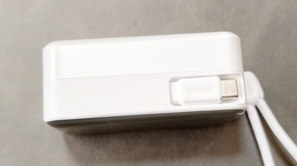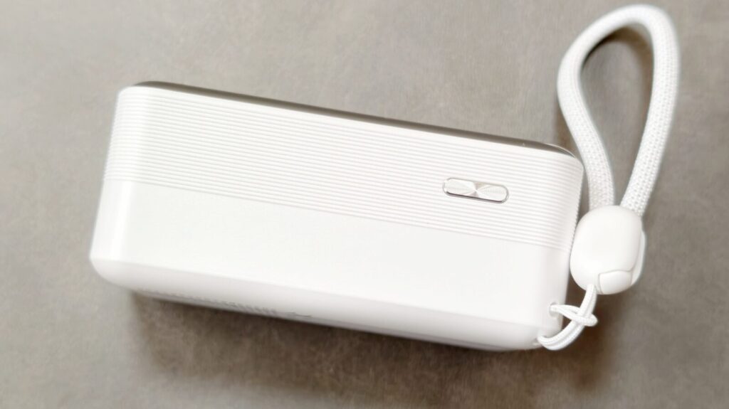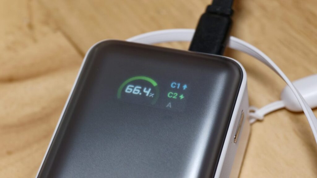 出力だけでなく、入力(本体への充電)も優秀です。内蔵ケーブルまたはUSB-Cポートから最大30Wでの急速充電が可能で、忙しい朝でも短時間でバッテリーをチャージできます。さらにパススルー充電にも対応。コンセントが一つしかなくても、本体を充電しながらスマホを同時に満たすことができる、極めて合理的な設計です。
