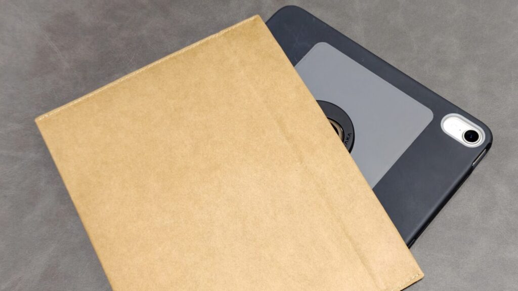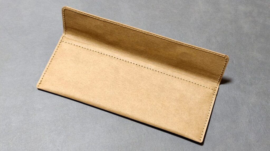 極めて薄く、構造もシンプル。悪く言えば「ただ紙を三つ折りにしただけ」に見えるかもしれません。 しかし、この飾らない素っ気なさこそが、本製品の真骨頂。ガジェット類が持つ「重厚感」とは対極にある、この軽やかな存在感が心地よいのです。