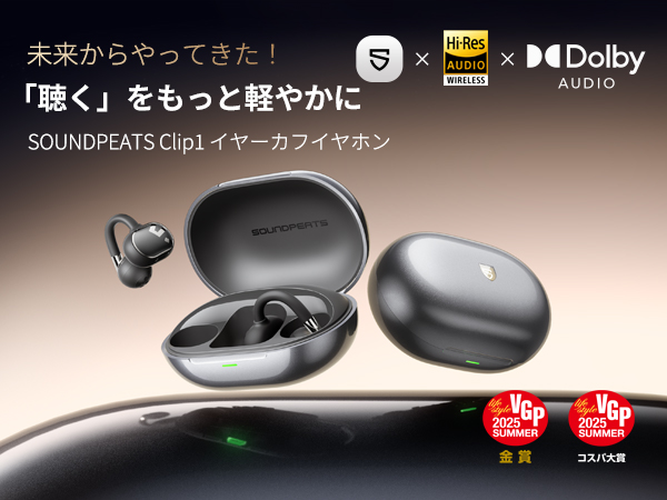その難題に終止符を打つのが、SOUNDPEATSの野心作【SOUNDPEATS Clip1】です。 結論から言えば、本作は「安価なイヤーカフ型」の常識を覆す破壊的な完成度を誇ります。「VGP2025 SUMMER」金賞が示す通り、その実力は本物。わずか5gの筐体に、12mm大型ドライバーやLDAC、独自の低音技術を凝縮。さらに左右不問の「AutoSense™」や快適な装着感を実現した「N-Flex Arch™」構造の採用など、利便性もフラッグシップ級です。