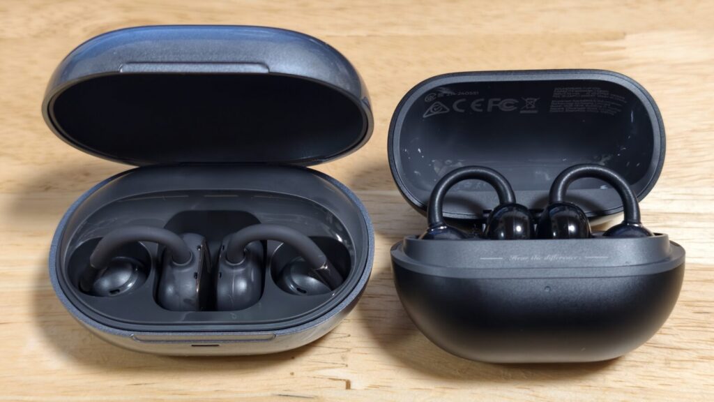 また、充電ケースは指輪ケースタイプで、机の上に置いていても安定して取り扱うことができます。同社同タイプの比較的安価な「SOUNDPEATS UU」と比較すると、充電ケースの形状が異なることがわかります。