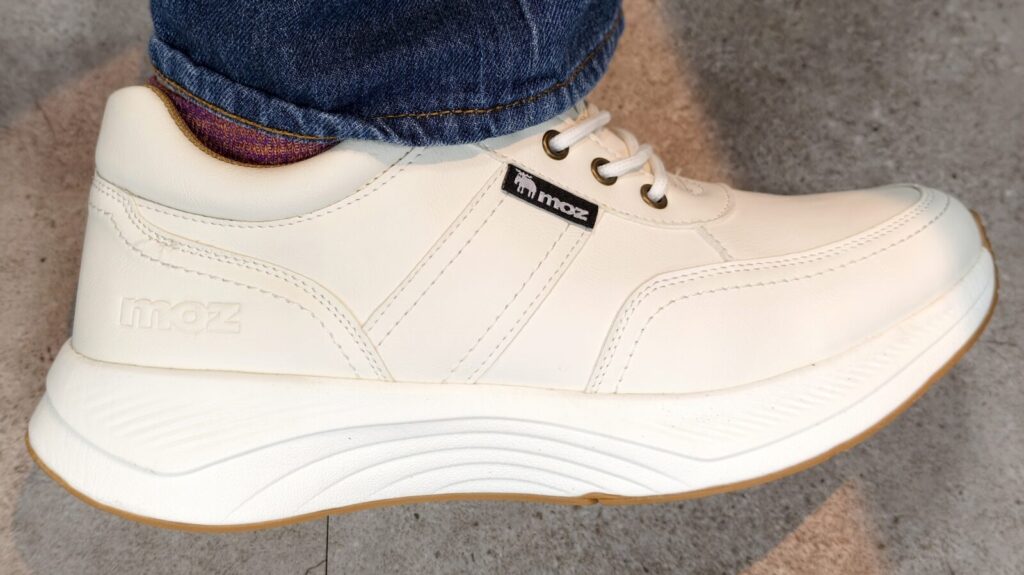 スウェーデンの人気ブランド「moz」らしい、シンプルで高級感のあるデザイン。アッパーがシボ感のあるフェイクレザーなので、ジャージだけでなくジーンズやスラックスにも合わせやすいのが魅力です。