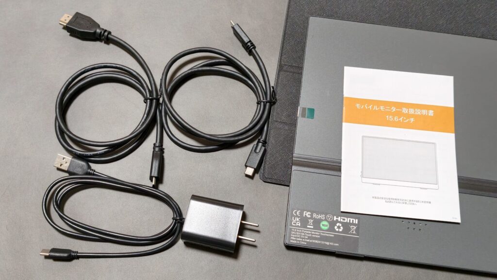 必要なものがすべて揃っているので、届いたその日からすぐに使い始めることができます。特に3種類のケーブルが標準で付属しているのは大きなメリット。これらを別途買い揃えると意外と高くつくので、非常に嬉しいポイントです。