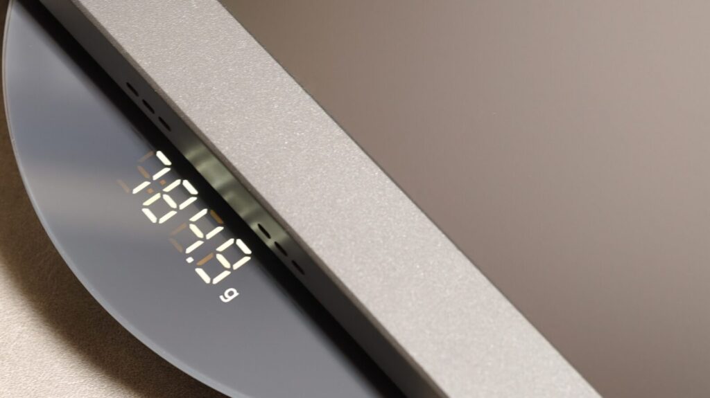 本体の重量を計測したところ、モニター単体で実測784.9gでした。公称値の1.8ポンド(約816g)よりもわずかに軽量という結果です。