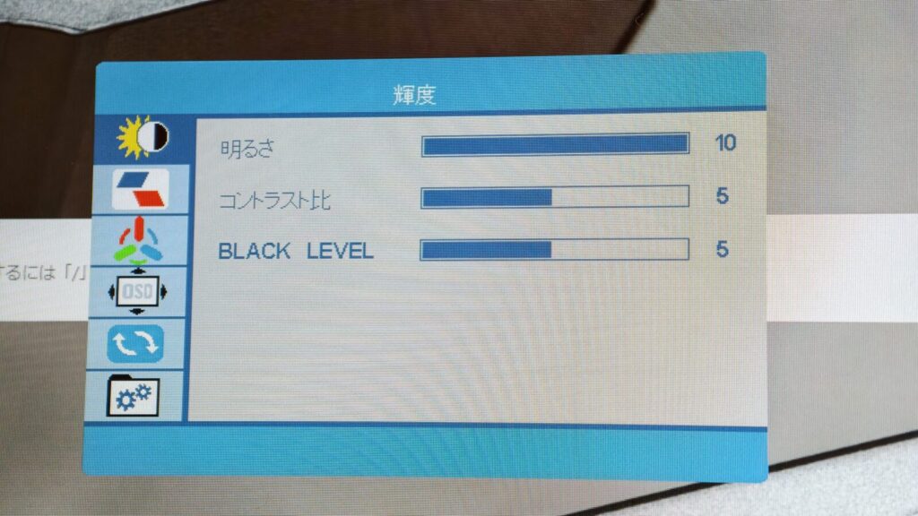 モニターの設定はスクロールホイールを「押す」ことで出てきます。