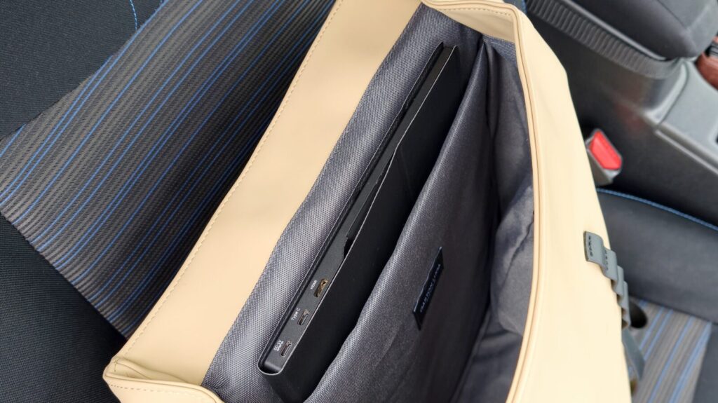 とはいえ、15.6インチのノートPCとほぼ同じサイズ感なので、15.6インチのPCが入るバッグであれば問題なく一緒に収納して持ち運ぶことが可能です。