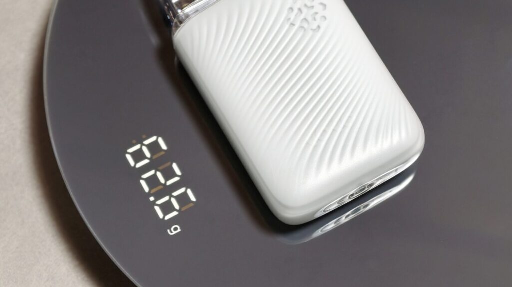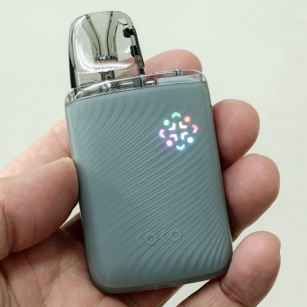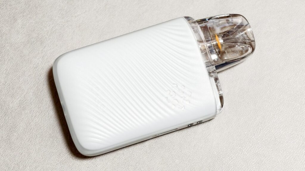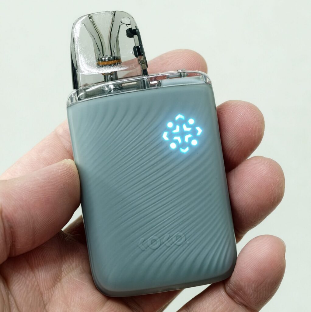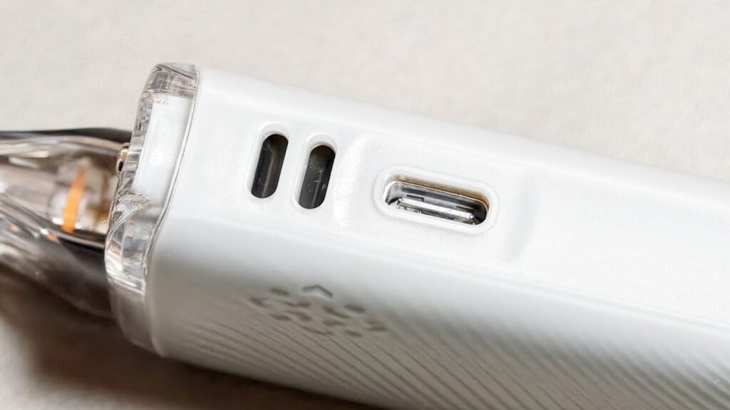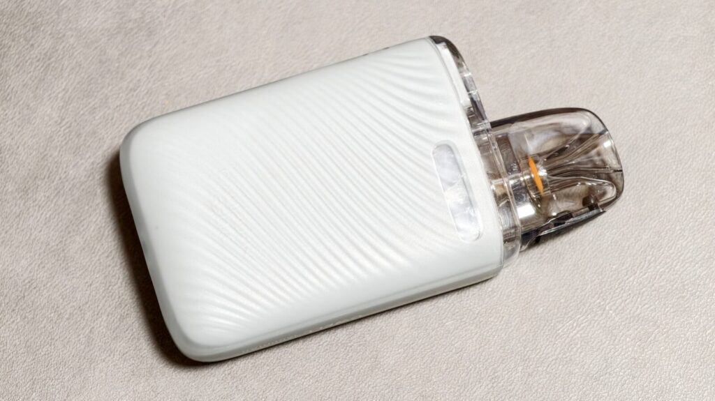 表面は波紋のような凹凸のある加工が施されており、ポッド内のリキッド残量が確認できる小窓も用意されています。