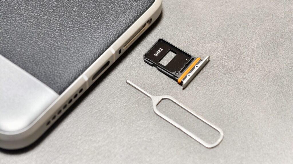 本体下部には、スピーカー、充電ポート、マイク穴、そしてSIMスロットが並んでいます。