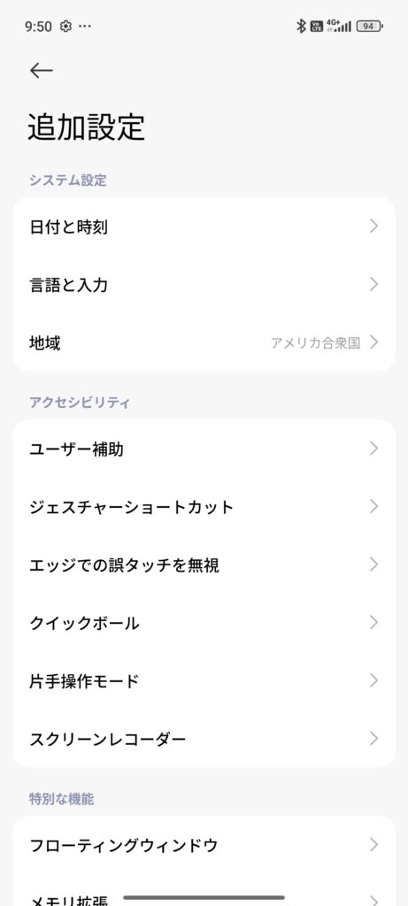 国内向けスマホはシャッター音固定が一般的ですが、本機は設定から「地域」を日本・韓国以外(例:米国など)に変更することで、カメラアプリ内から音を消す設定が選択可能になります。